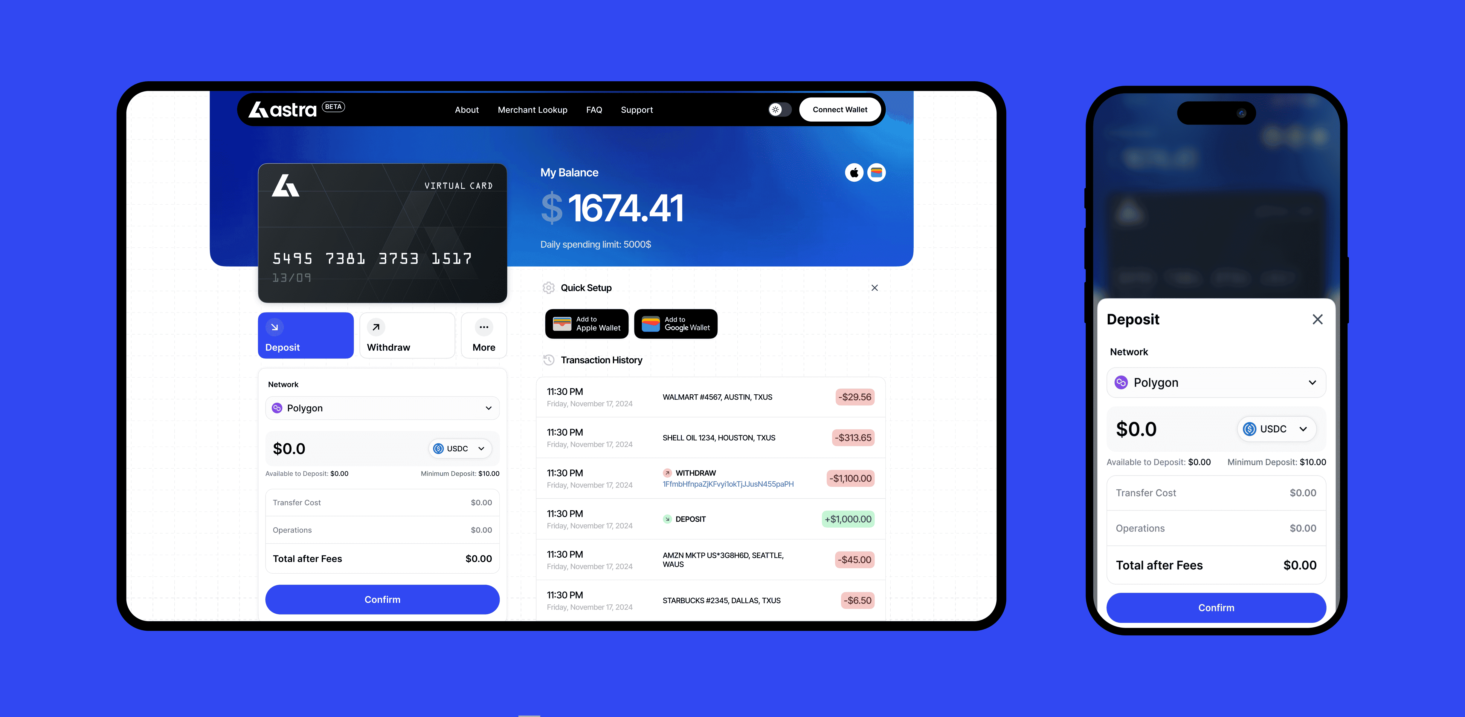 Astra is a digital finance platform that bridges crypto and everyday payments through a sleek virtual card and intuitive app. The design delivers clarity, trust, and seamless usability across web and mobile experiences.