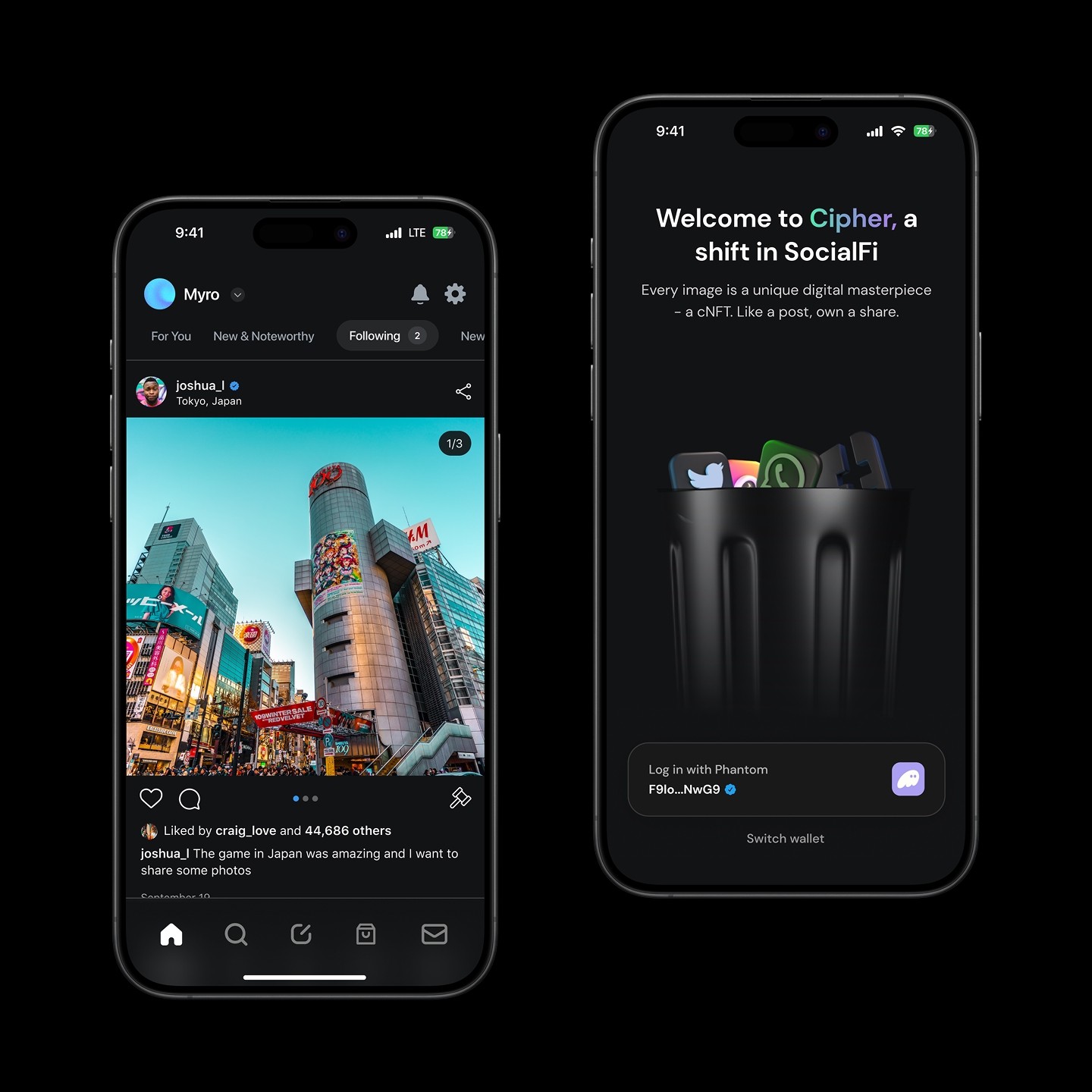Cipher is a SocialFi platform built on Solana that turns every post into a digital collectible with real profit-sharing. The design blends sleek mobile-first interfaces with community-driven features, making social content both valuable and engaging.